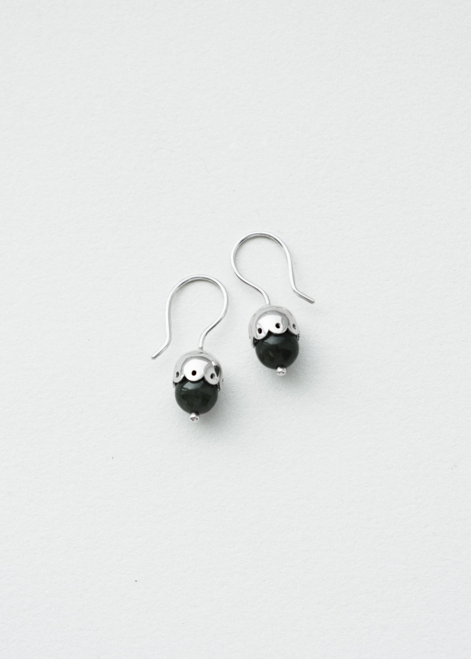 Sterling silver drop earrings with black onyx and scalloped cap details. Effortless and lightweight—perfect for daily wear.